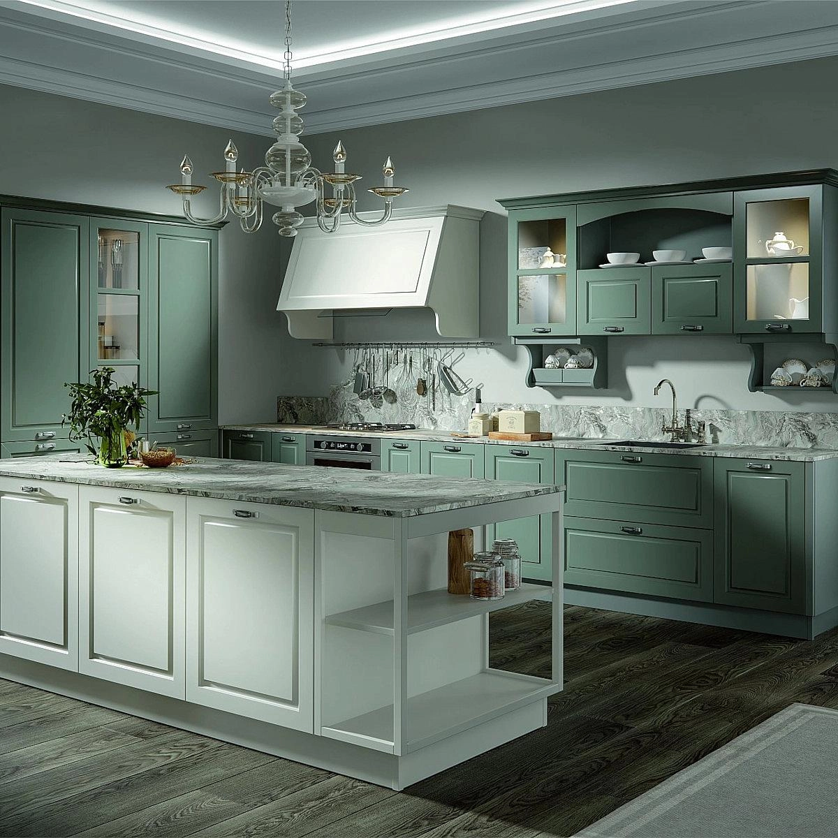 Современное прочтение классики: изысканные фасады с утонченной фрезеровкой, продуманная эргономика и технологичный комфорт. Подходит для неоклассики, классических интерьеров и ар-деко