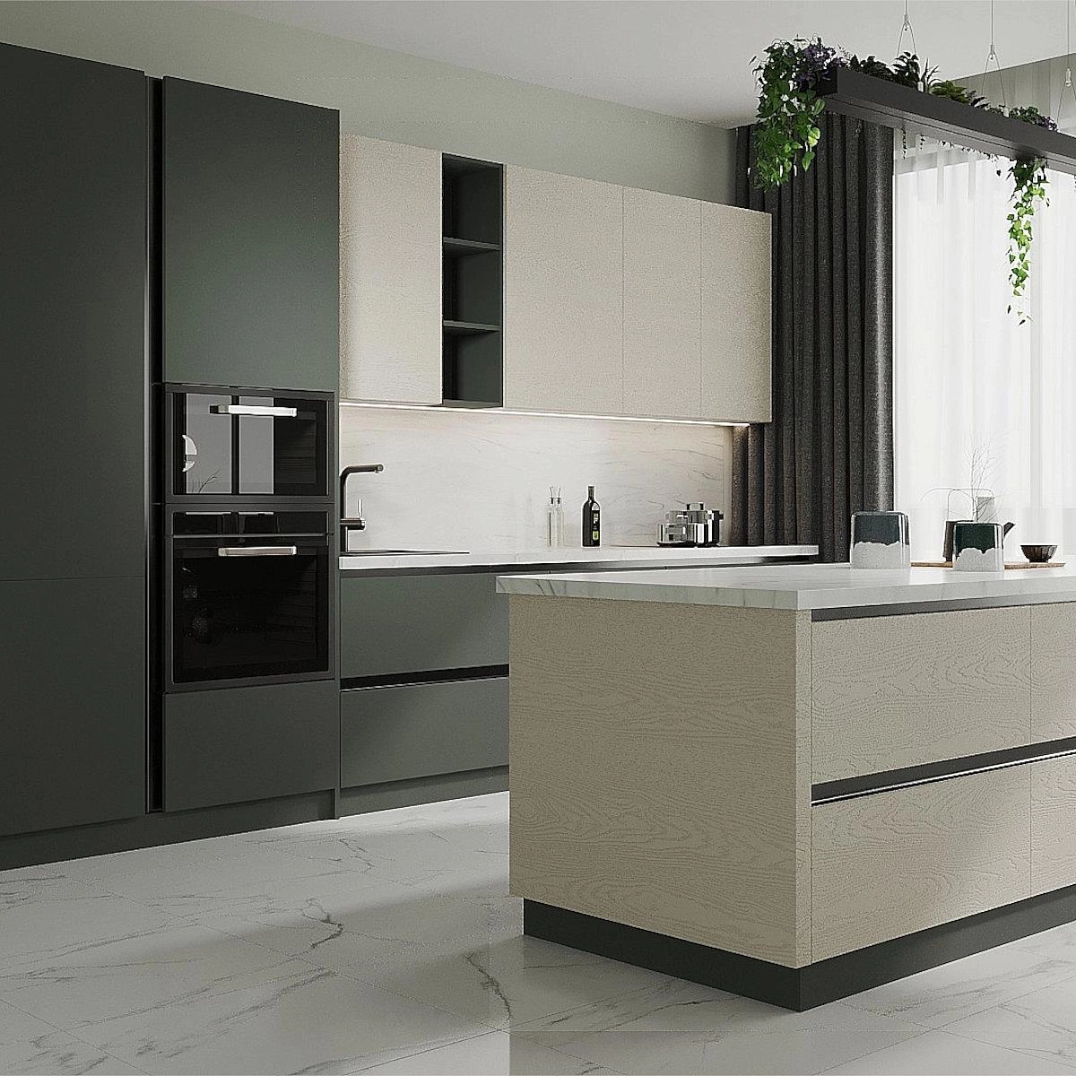 Кухни с системой Gola объединяют функциональность, комфорт и эстетику, создавая гармоничное пространство в современном или неоклассическом стиле.