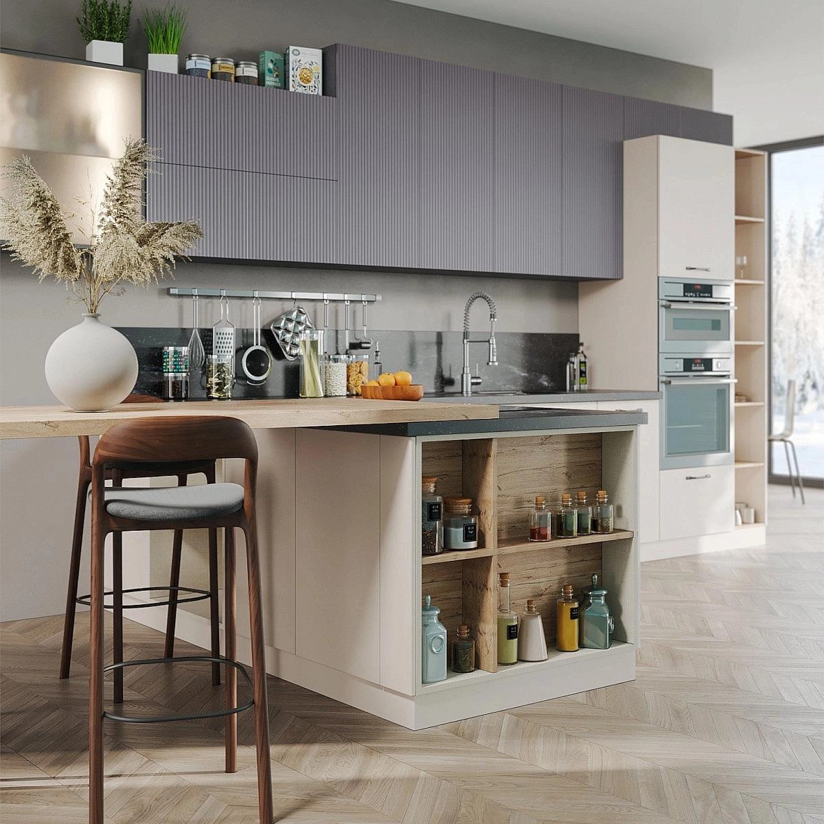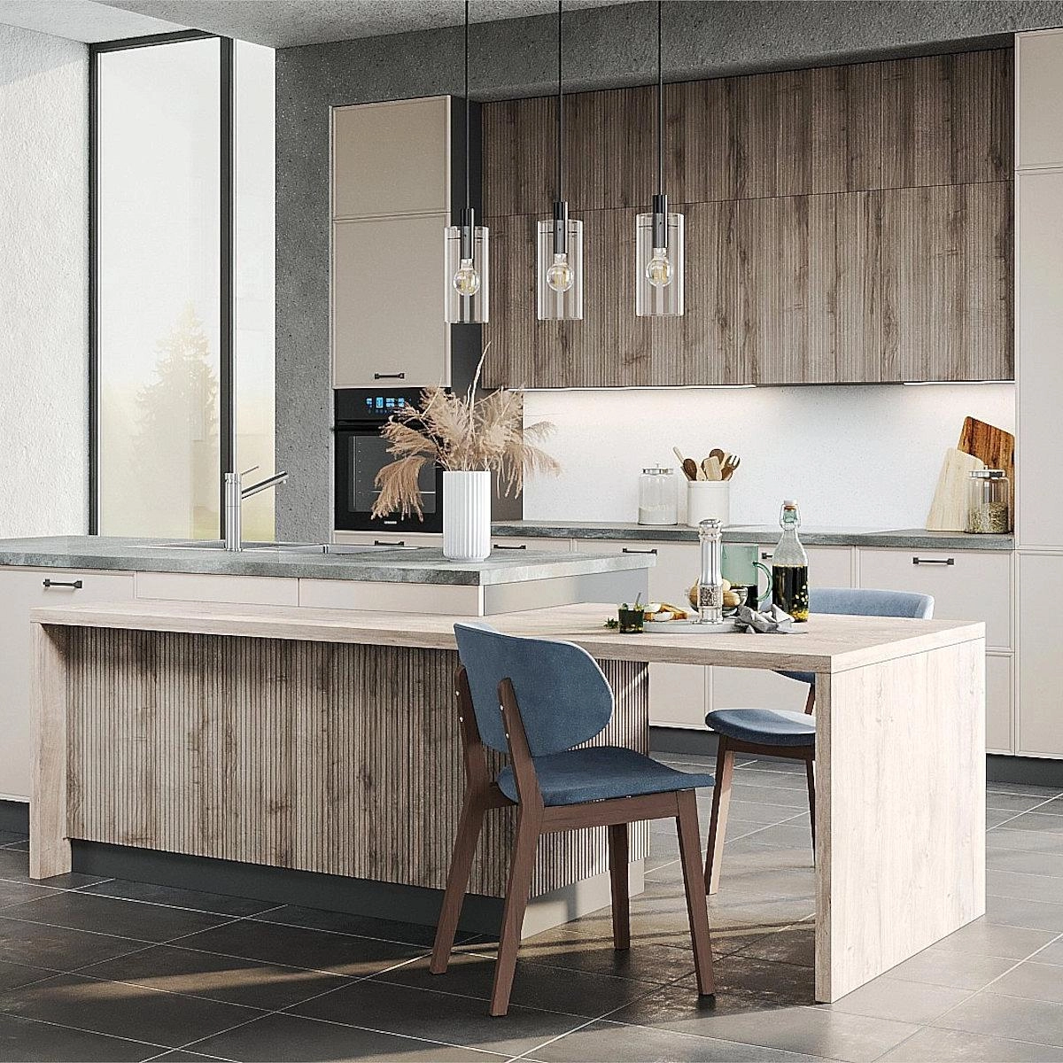 Кухни про тактильность и игру света. Вертикальный рельеф фасадов добавляет динамику, визуально облегчает пространство и делает привычные формы заметно интереснее. Такие фасады легко вписываются в разные стили, освежая классические и минималистичные интерьеры.